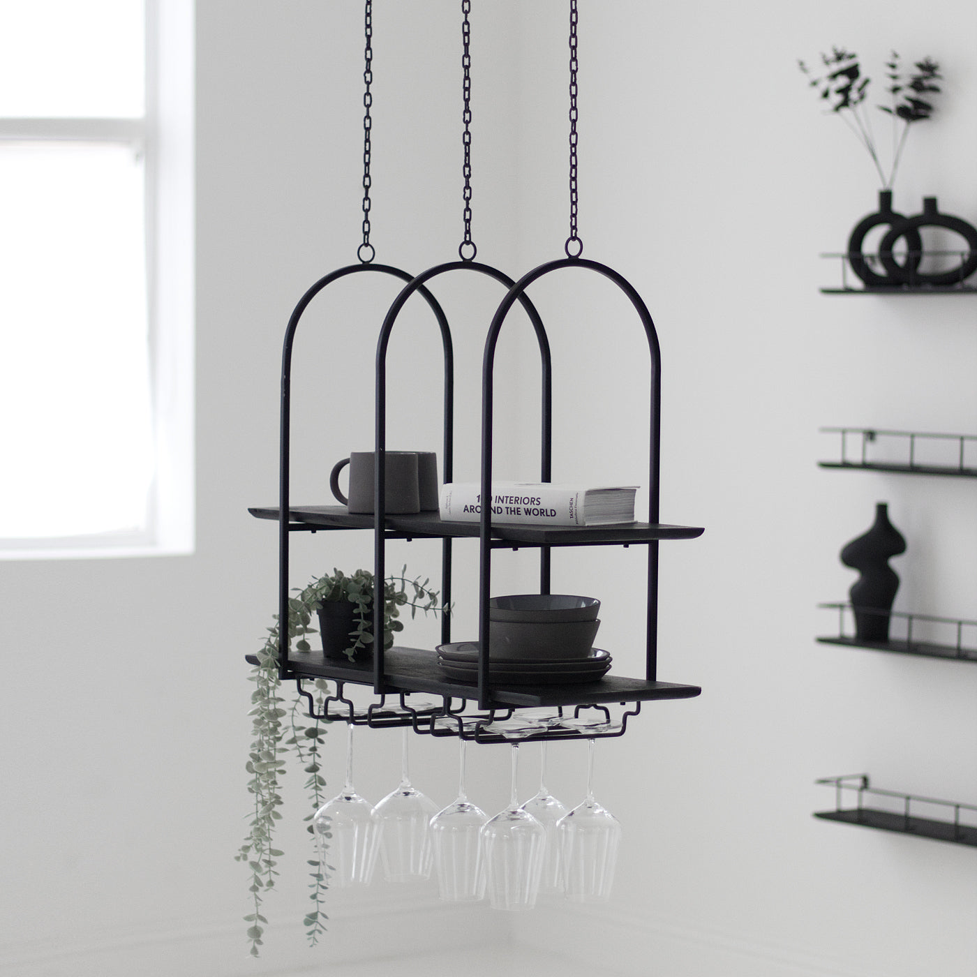 Ceiling-hanging shelves are great for creating extra storage space overhead and offer a unique, sculptural feel to your kitchen design. They can be installed directly over worktops or kitchen islands for easy access while you’re cooking.
