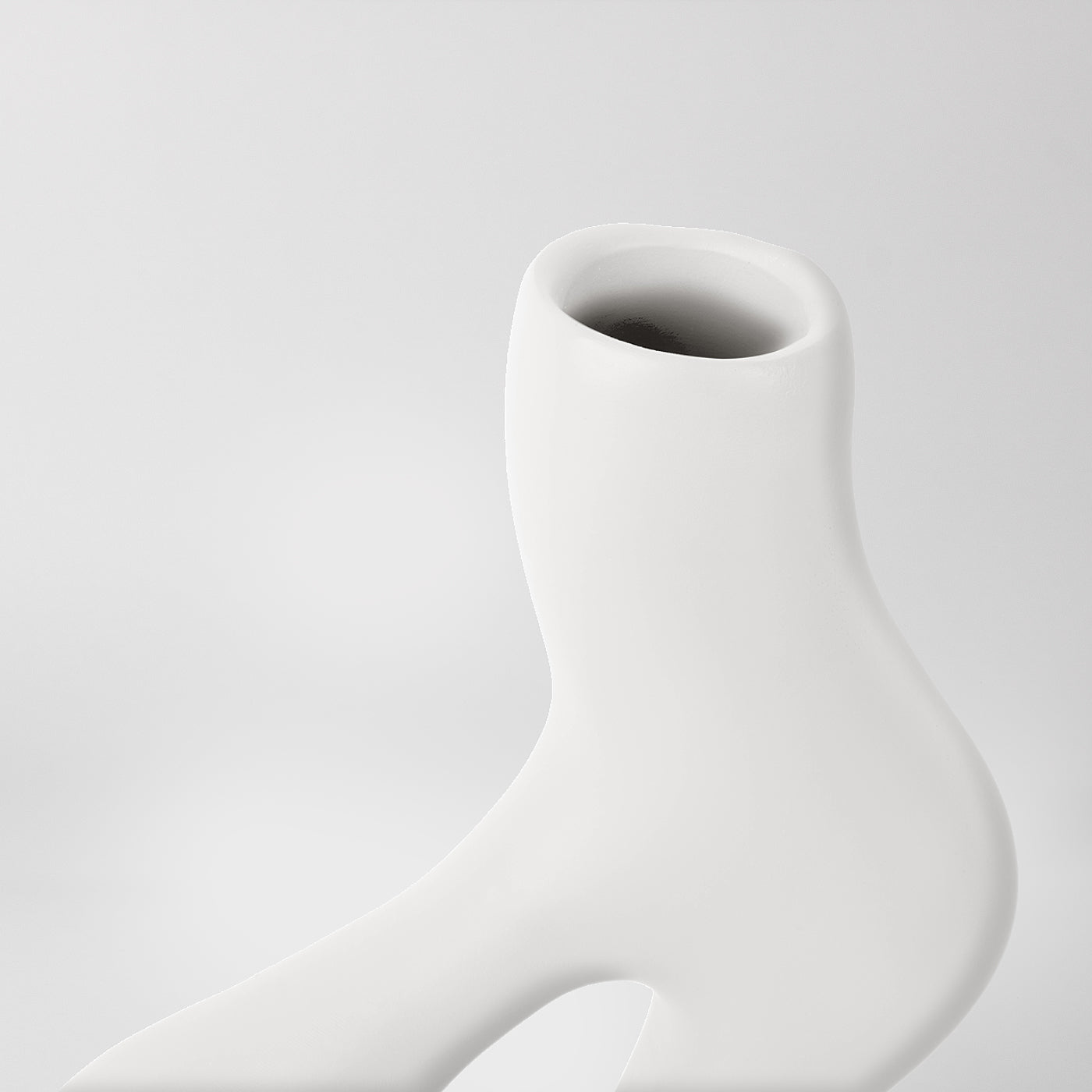 The elegant, organic curves of the Jorne candle holder will add a sculptural feel to any room. Finished in white with a smooth matte surface that complements its abstract form, it can be used either to hold a tapered candlestick or as a vase, and looks great when filled with a delicate spray of green leaves or a single flower stem.