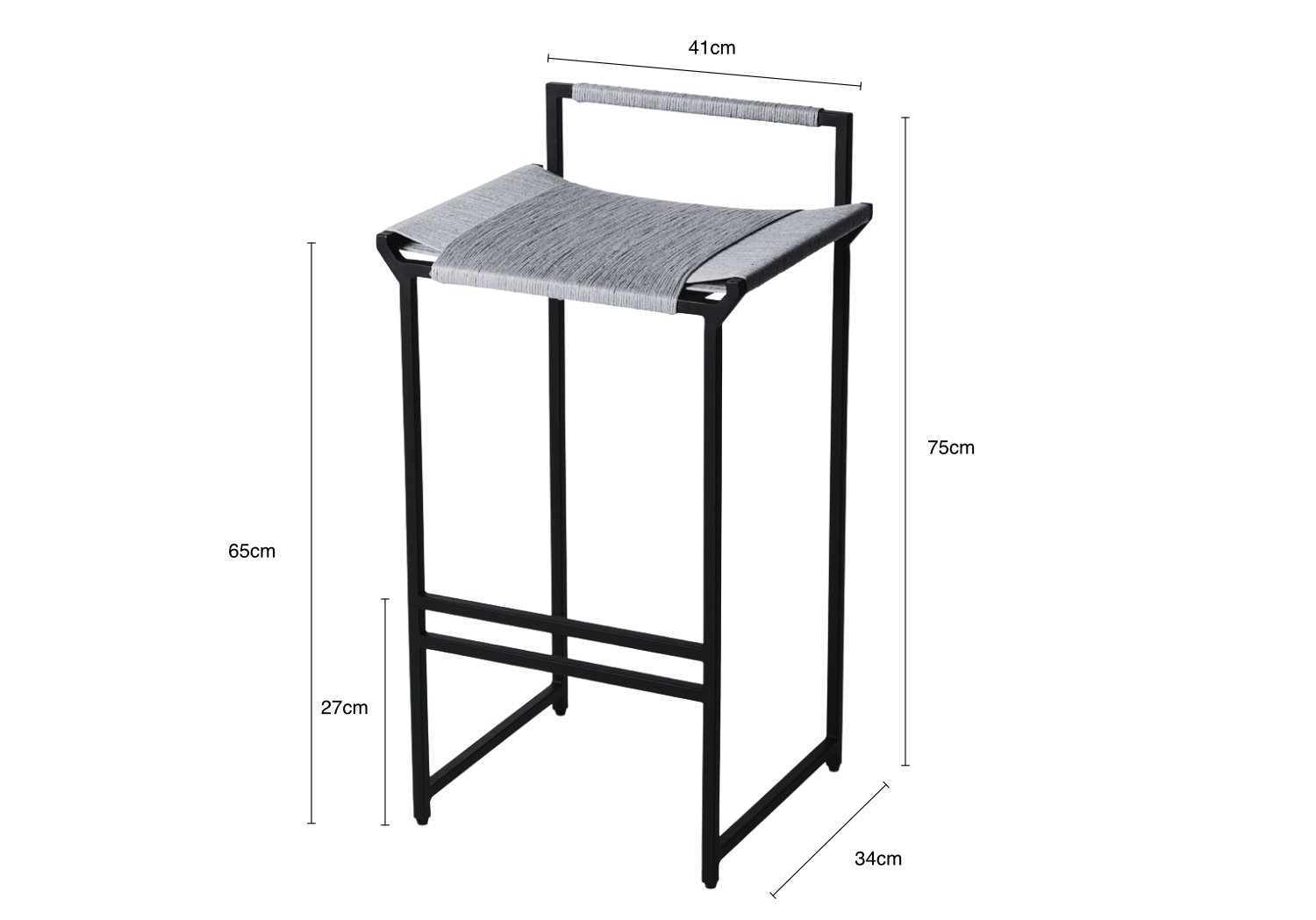 The Wapu Bar Stool features a unique splayed-out metal seat design, providing ample room for comfortable and unrestricted seating. The seat is intricately woven with black jute, combining durability with a high level of comfort. Designed with a low backrest, the stool offers mild lumbar support, encouraging good posture without the need for a reclined position. This thoughtful design element ensures that you can enjoy extended periods of seating with ease.