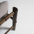 Crafted from solid oak and finished in a rich dark tone that enhances the grain and depth of the timber. The sturdy wooden frame delivers long-term strength and stability. Plush cushions are upholstered in textured grey bouclé, offering soft contrast and lasting comfort. Distinct leather strap detailing along the armrests adds structure and refinement. Built with durable materials throughout, designed for everyday use.