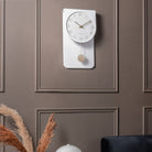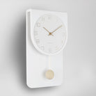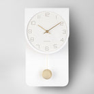The Kare white designer wall clock is a beautiful piece of contemporary design comprising a clock face and swinging pendulum suspended in front of a simple backplate. The matte white design is highlighted with brass details for a luxury aesthetic that wonÕt feel overbearing, making this a perfect timepiece to hang in modern, minimalist and monochrome spaces.