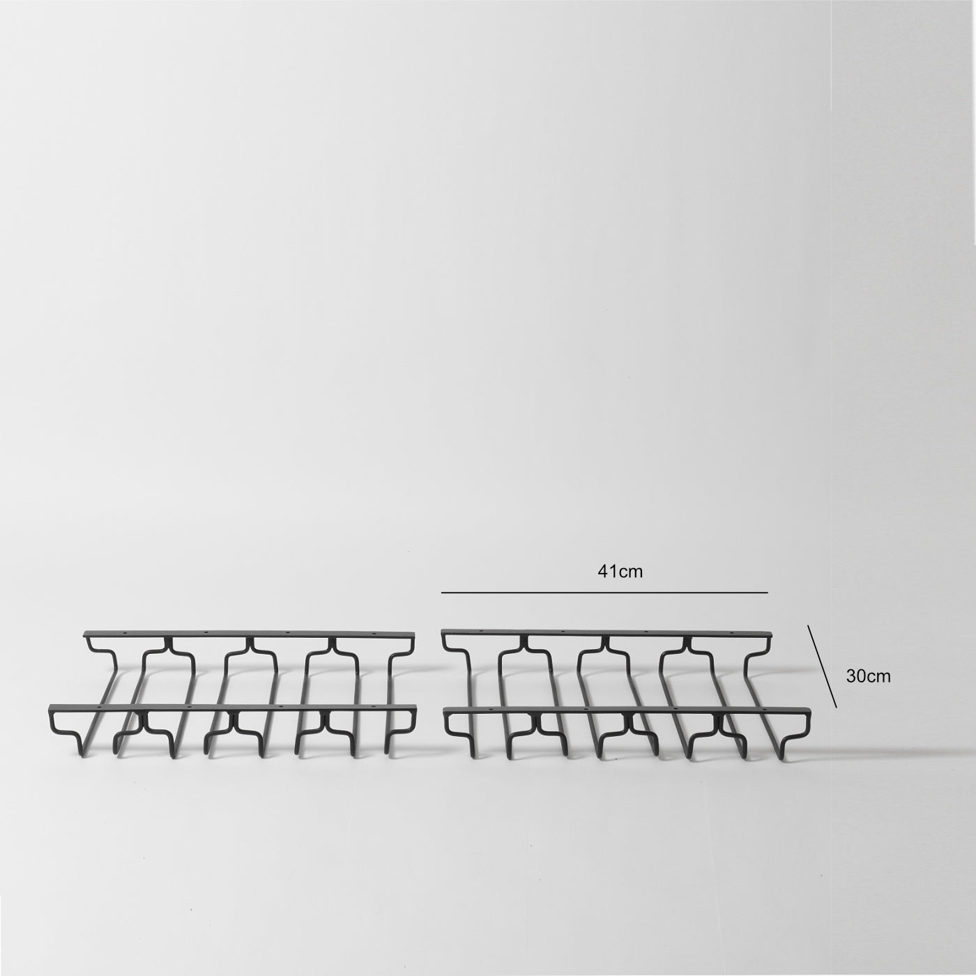 This pair of wine glass brackets have been designed to attach to the underside of our XL Boe suspended shelves. They will not fit the small, medium or large versions. These brackets will also fit any custom or homemade shelf with a flat surface, providing the dimensions align.