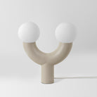 This modern table lamp features a symmetrical Y-shaped design topped with two spherical lampshades in frosted glass for soft, diffused illumination. Whether placed on a desk, bookcase or console table, the Lane lamp adds stylish charm to your home and looks just as appealing as a piece of art whether lit or not.