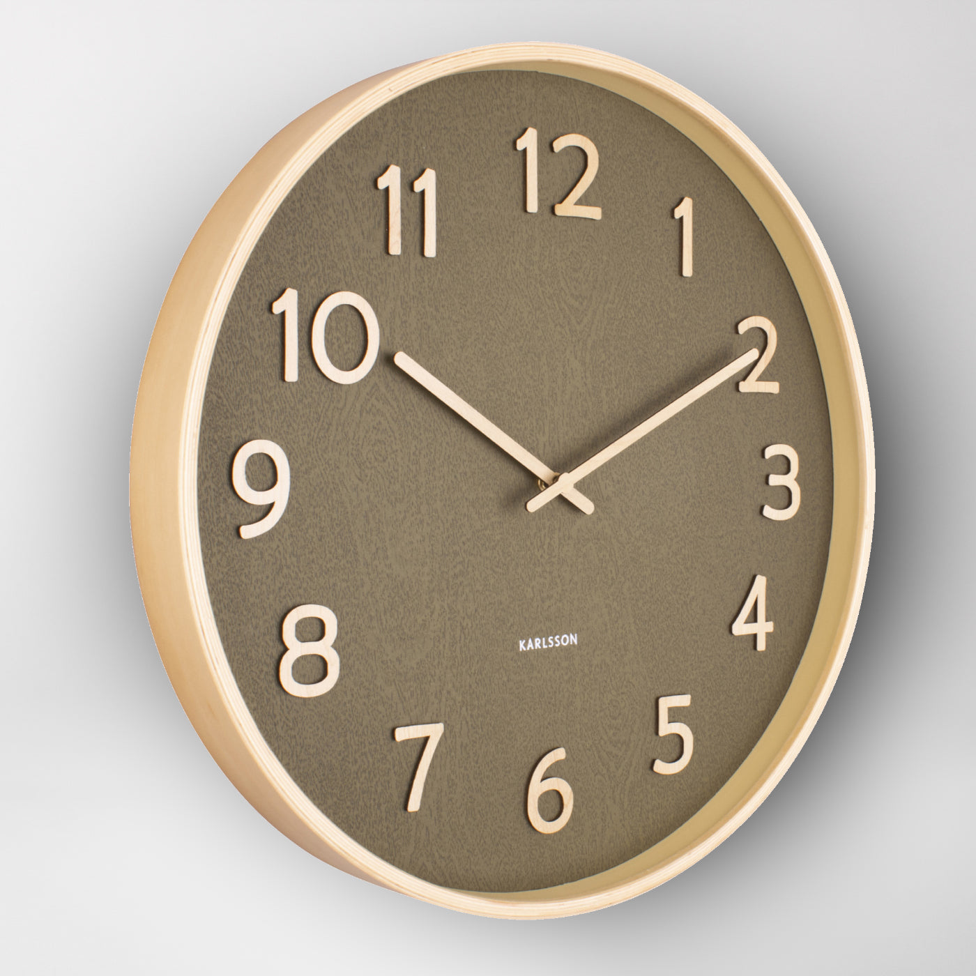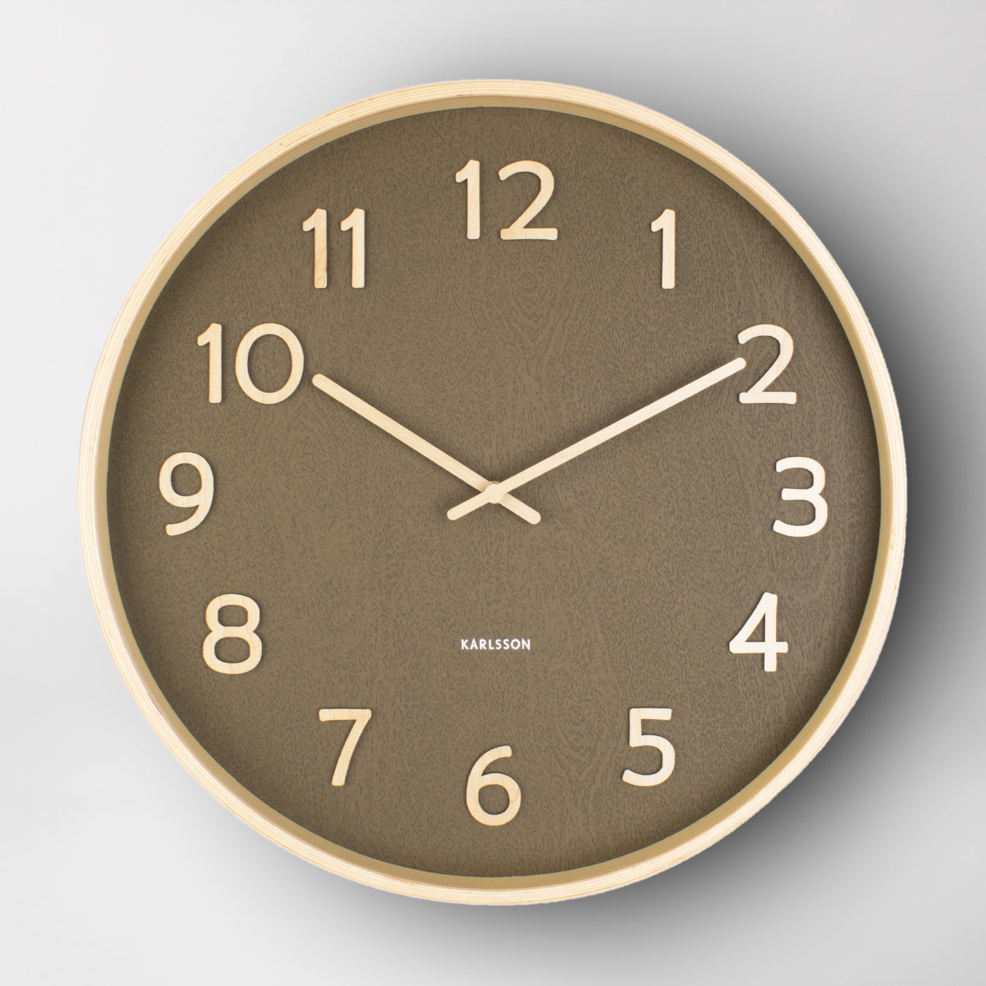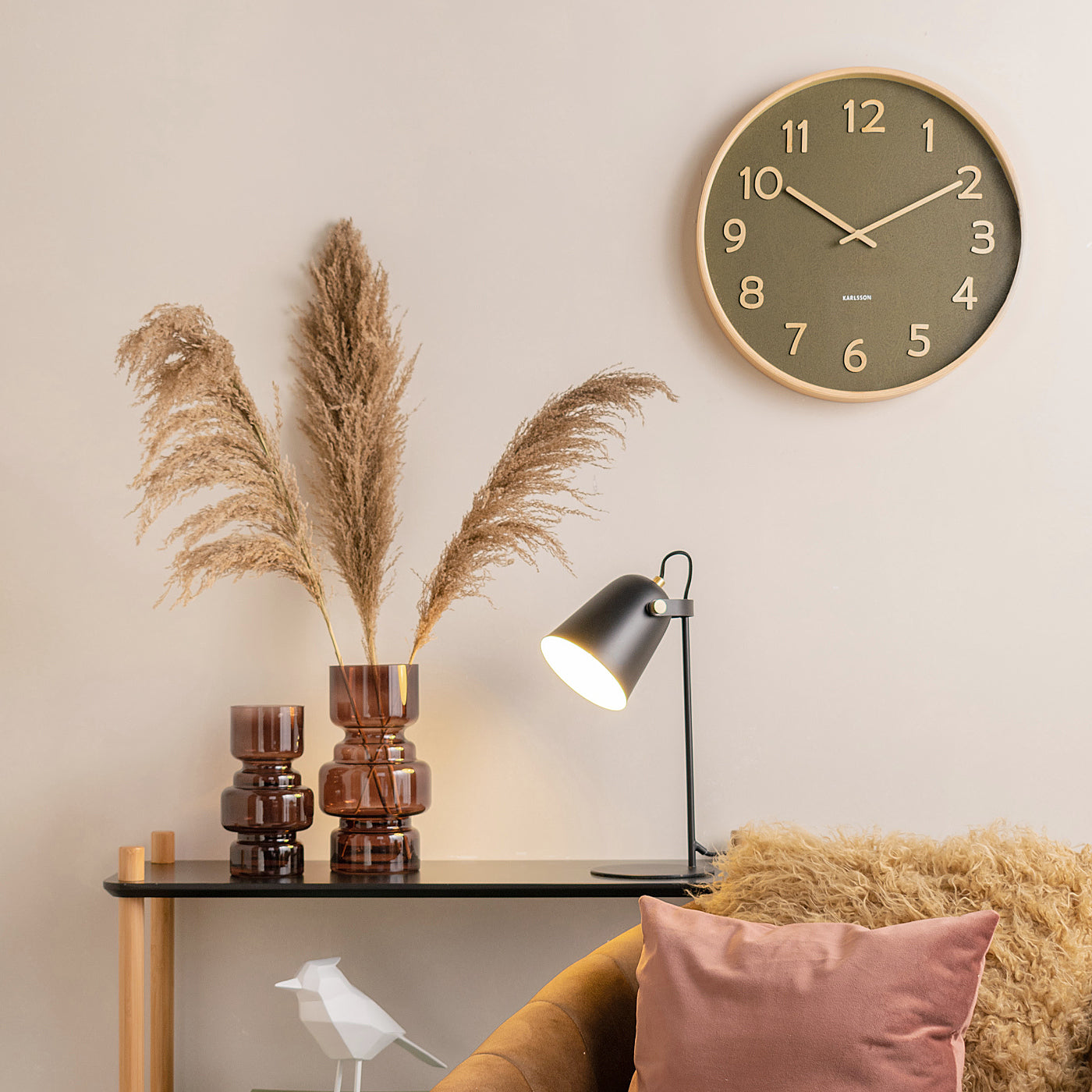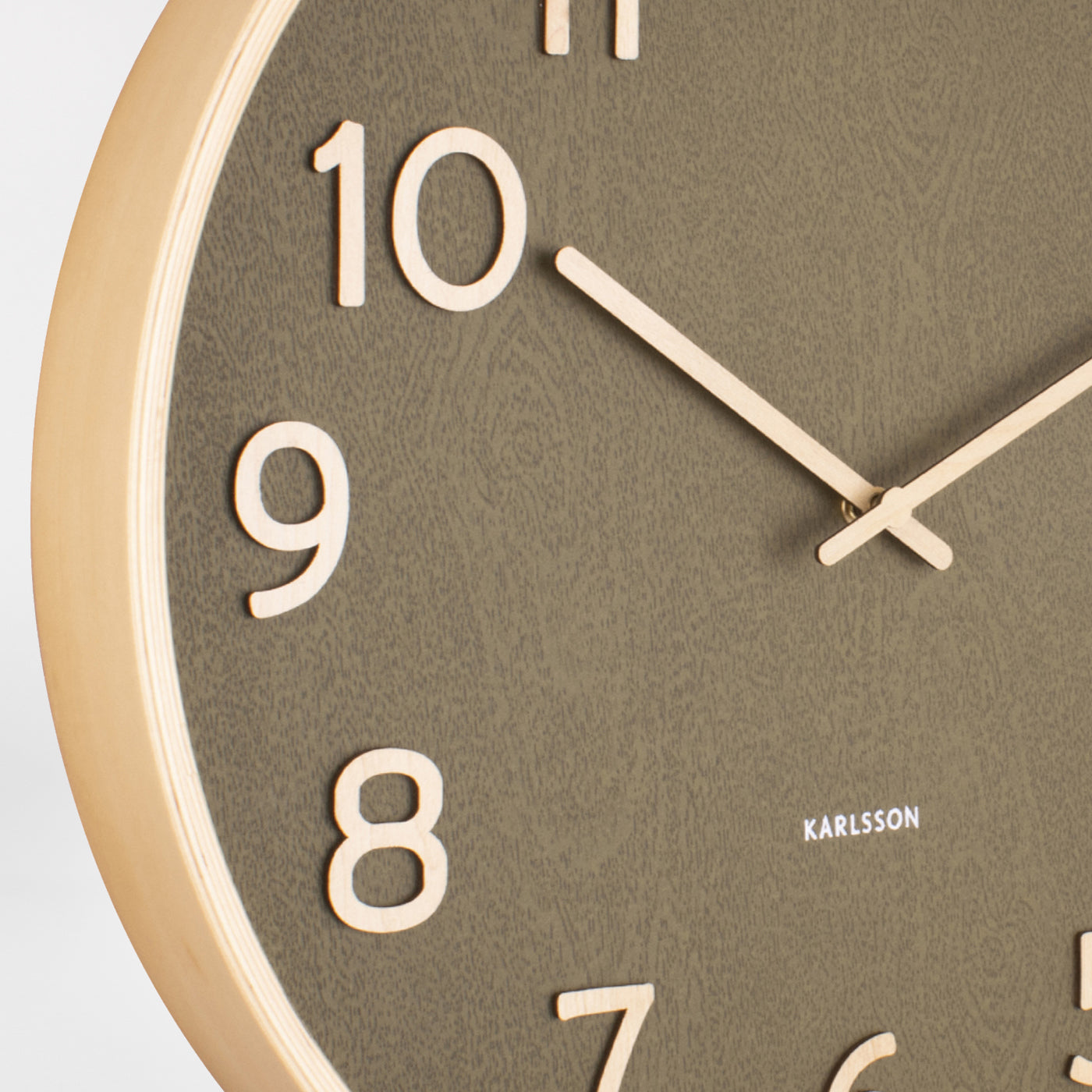 Embrace the beauty of natural materials with the Kindr moss green wall clock. Its two-tone wooden construction is both stylish and understated, with large numbers surrounding the clock face for a clean, practical appearance. The combination of natural materials and elegant minimalism makes this an ideal piece for accessorising Scandi and Japandi spaces without creating unnecessary clutter.