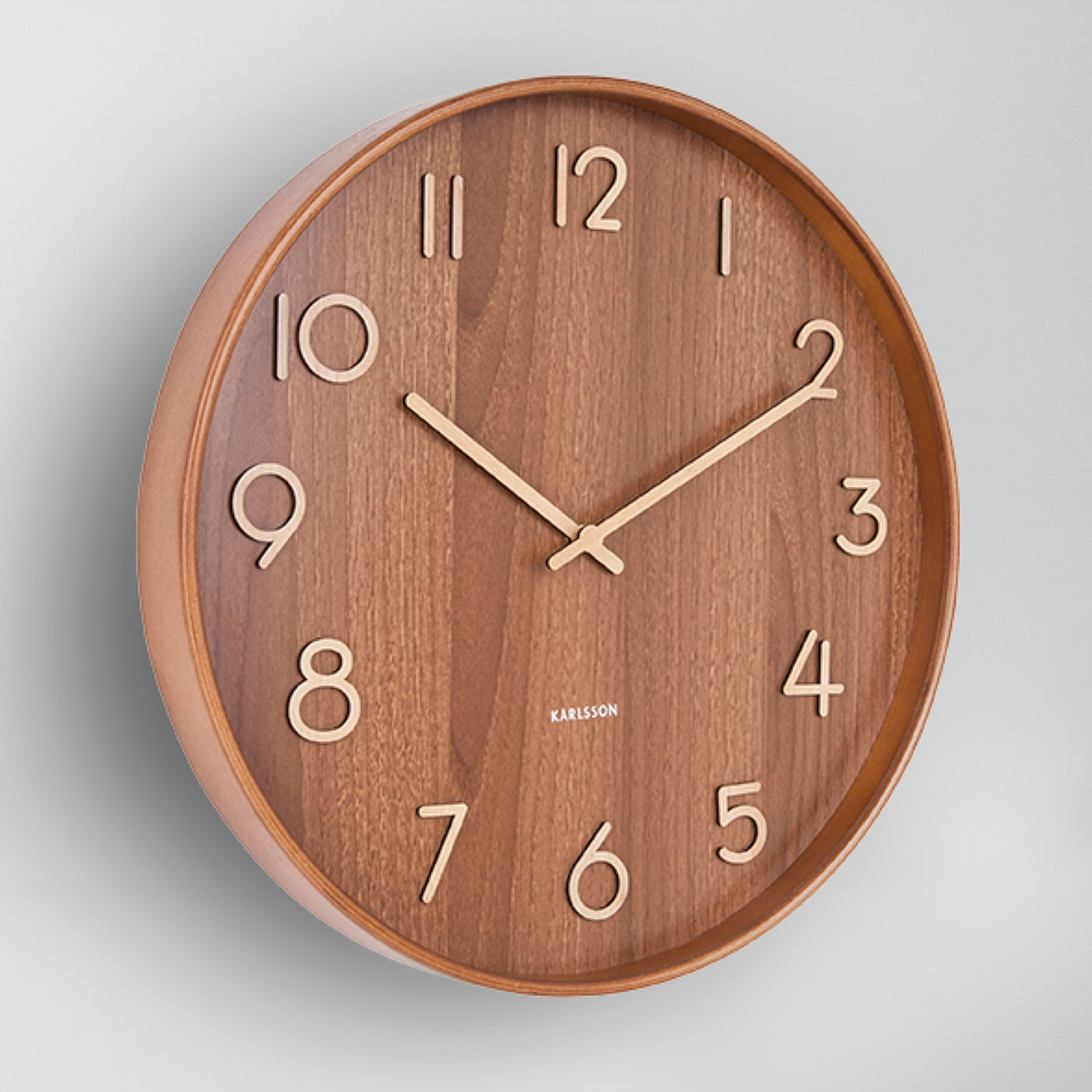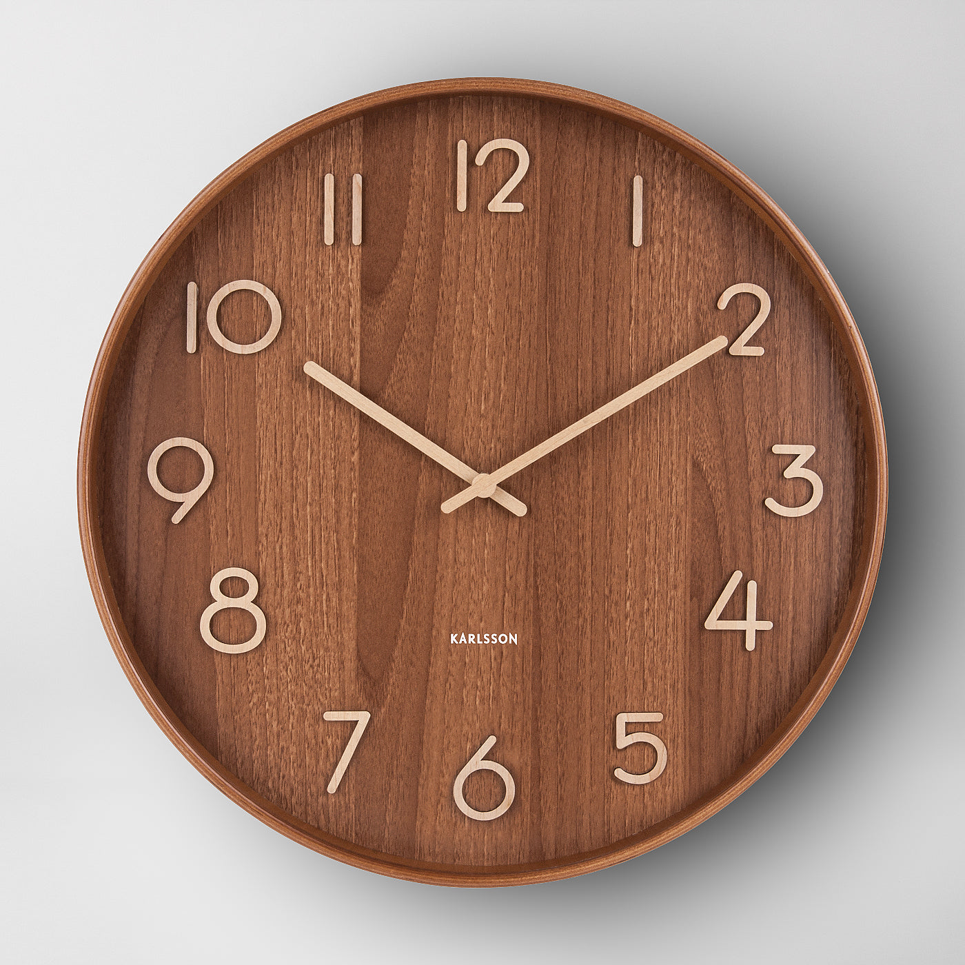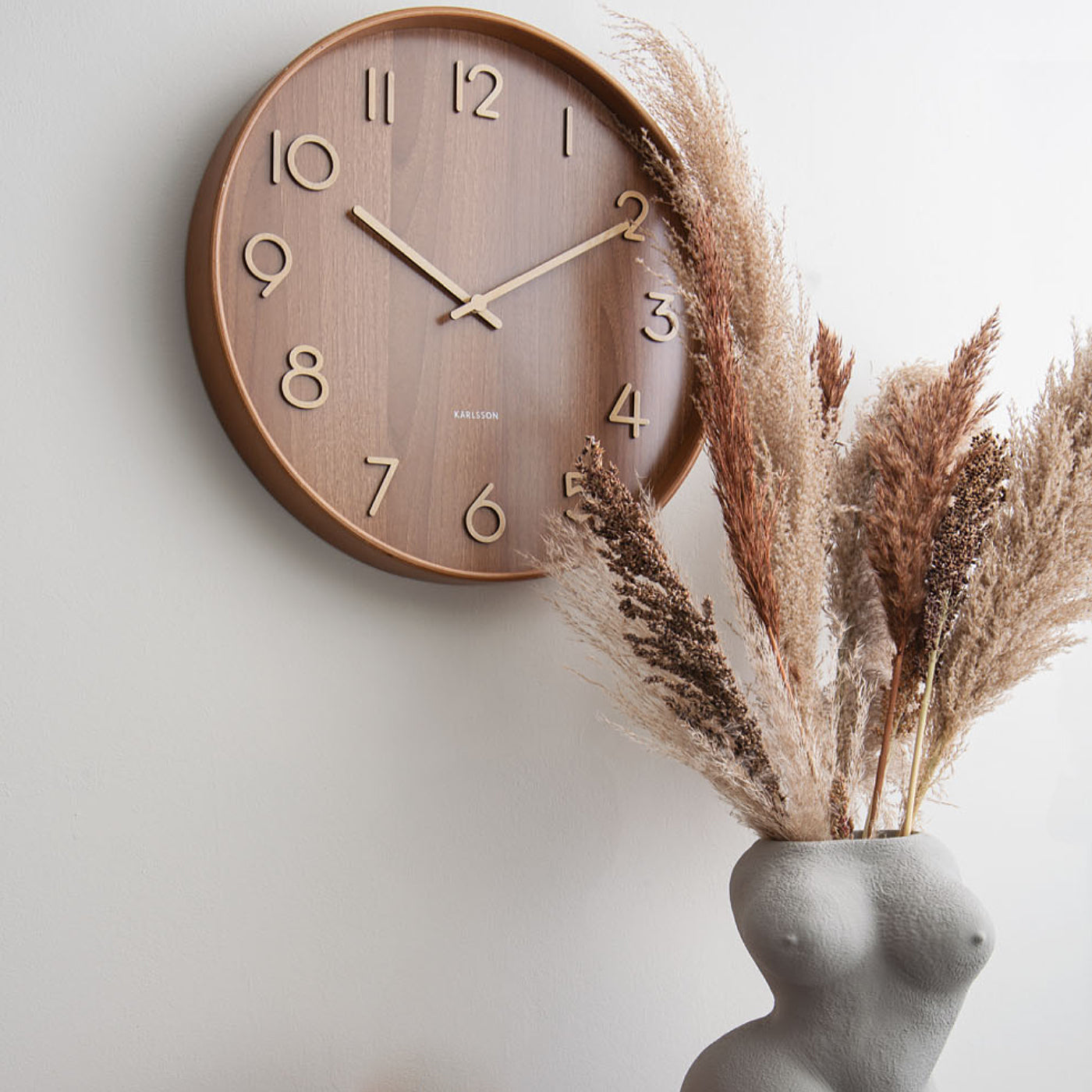 The Kindr walnut brown wall clock comprises both modern and retro vibes, resulting in an attractive timepiece that looks at home in both contemporary and vintage-inspired spaces. This generously sized timepiece is crafted from wood with contrasting hands and numbers for a sleek look and easy readability, creating a visually appealing piece that is as practical as it is beautiful.